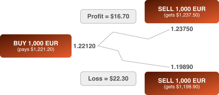 When you go long on EUR/USD, you’re theoretically buying euros with dollars. When you close the trade, your profit or loss will be calculated in dollars. If the euro strengthened against the dollar, you’d get more dollars when you close the transaction. If the euro weakened, you’ll get back fewer dollars.