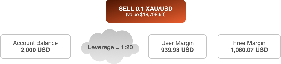 One of the benefits of CFD trading is you can use leverage to reduce how much capital required to open positions. register offers up to 1:20 leverage for trading XAU/USD, which means you only need to provide a 5% margin to open a position.